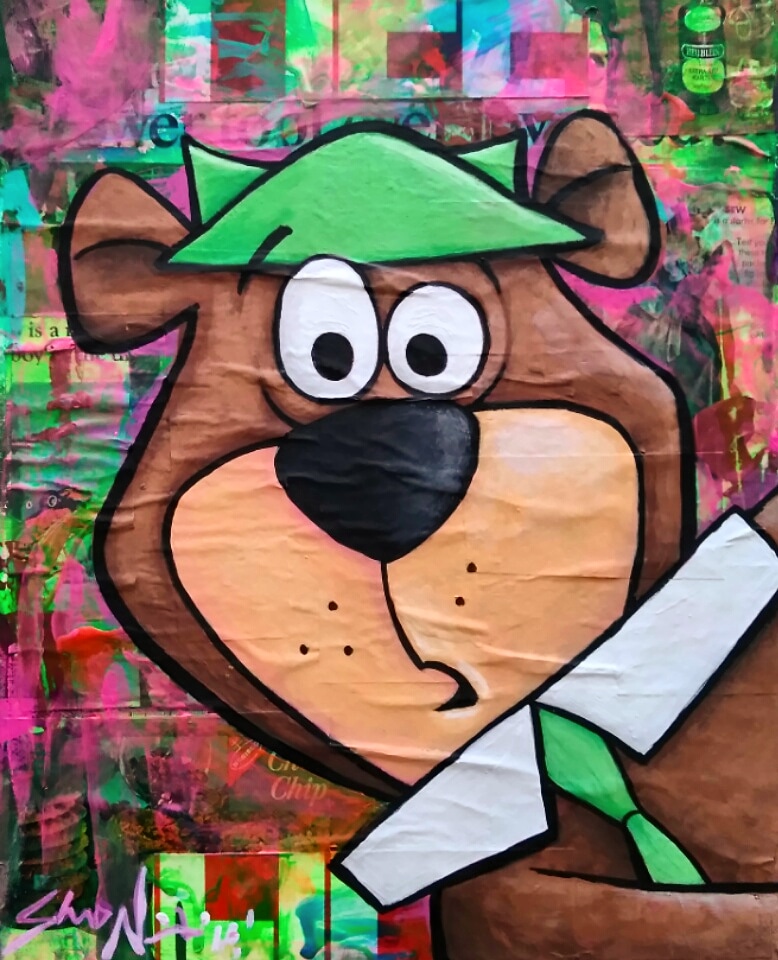 Yogi 11×14 Acrylic and vintage collage on canvas. Blacklight sensitive